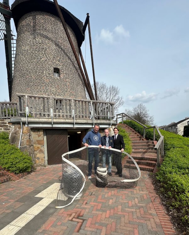 Tennisabteilung unterstützt Mühlenverein HiesfeldUnd das schreiben die Freunde vom TV Jahn Hiesfeld auf ihrer Webseite Die Tennisabteilung des TV Jahn Hiesfeld e. V. freut sich, einen kleinen Beitrag zum Erhalt eines wichtigen Stücks Ortsgeschichte leisten zu können. Der Mühlenverein Hiesfeld ist mit der Bitte an uns herangetreten, geeignete Absperrungen für den sicheren Betrieb der historischen Mühle bereitzustellen. Dieser Anfrage sind wir gerne nachgekommen und haben zwei ausgediente Tennisnetze zur Verfügung gestellt. Am 23.03.2026 erfolgte die offizielle Übergabe der Netze durch unseren Sportwart Arnd Steffen, Platzwart Michael Warns sowie den 1. Vorsitzenden Bernd Fuhlert an den 1. Vorsitzenden des Mühlenvereins Hiesfeld e. V., Herrn Manfred Feldkamp. Die Netze dienen rund um die Mühle als Absperrung, wenn diese in Betrieb ist und sich die Flügel drehen, sodass Besucher ausreichend Abstand halten und nicht in Gefahr geraten. Gleichzeitig tragen sie zum Schutz vor Vandalismus bei. Dadurch kann die Mühle künftig wieder häufiger in Betrieb genommen und für Besucher erlebbar gemacht werden. Wir freuen uns sehr, dass wir den engagierten Verein auf diese Weise unterstützen konnten. https://www.hiesfeld-tennis.de/tennisabteilung-unterstuetzt-muehlenverein-hiesfeld/ Der Mühlenverein sagt: DANKE |
