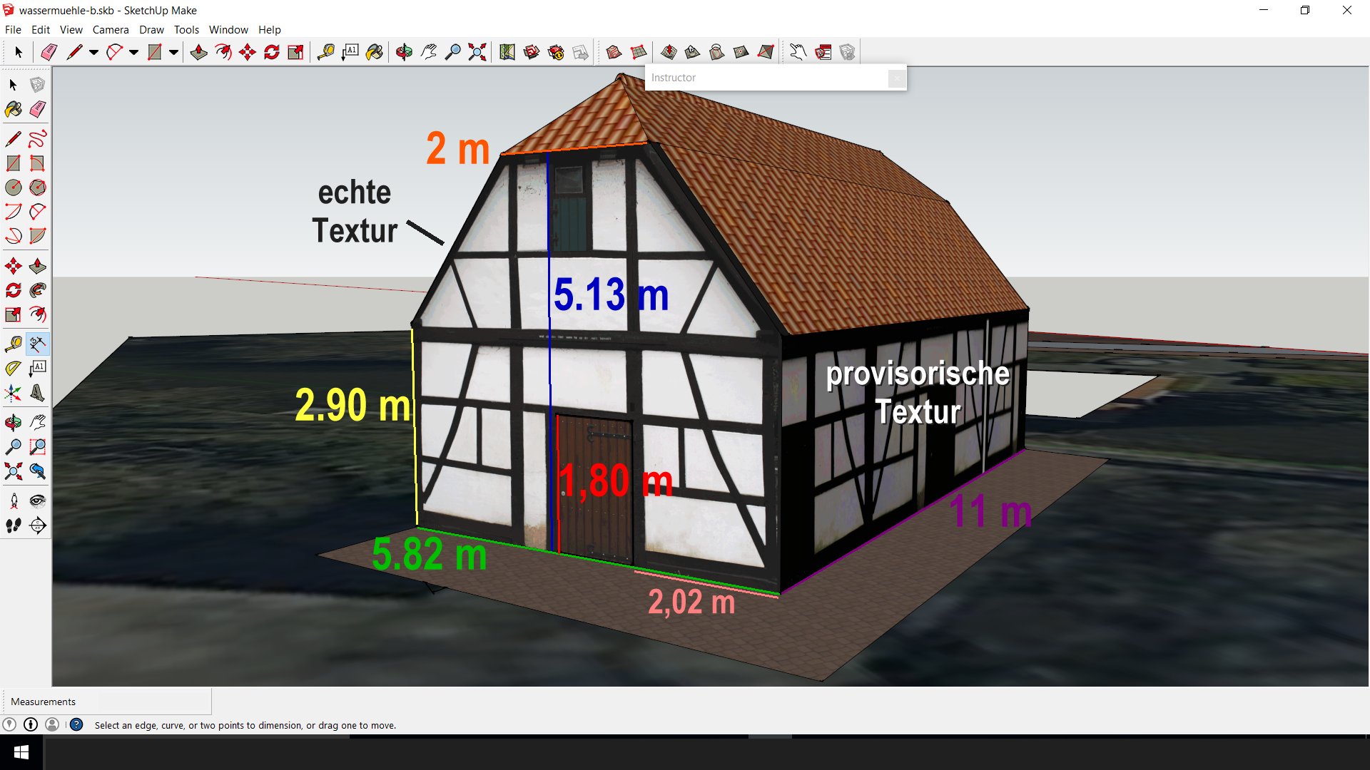 Computergezeichnete WassermühleEine Email-Anfrage aus dem Saarland brachte diese CAD-Zeichnung wieder aus dem Archiv. Dieses Fachwerkhaus und die anderen Gebäude des Wassermühlen-Ensembles waren als 3D-Modell für "Google Earth" geplant. In vielen Stunden wurden die Häuser mit dem "Zollstock" vermessen, da die Original-Baupläne von 1693 irgendwie "verbummelt" wurden. Bevor das CAD-Projekt vollendet wurde, nutzte Google eine andere Technik um ganz Dinslaken in 3D zu zeigen...