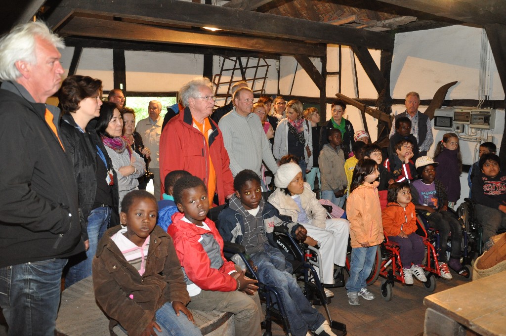 Ohne die Hilfe der AWO, der Caritas und der Diakonie wäre der Mühlenbesuch in Hiesfeld fast nicht zustande gekommen. Auch Kurt Altena, der „Mühlenchef“ zeigte sich glücklich, dass die drei großen karitativen Einrichtungen zeitgleich ihre Busse zur Verfügung stellten, um nicht nur die jungen Menschen, sondern vor allem die technischen Hilfsmittel, wie z.B. die Rollstühle, zu transportieren. Bürgermeister Heidinger zeigte sich sehr angetan von dem ehrenamtlichen Engagement der Friedensdorf-Helfer und deren Zielsetzung. Es geht ihnen nicht nur um das Tragen von Kindern oder das Schieben von Rollstühlen. Die Idee einer Welt in Frieden und Zuneigung soll den Kindern eine Perspektive für die Heimat geben.